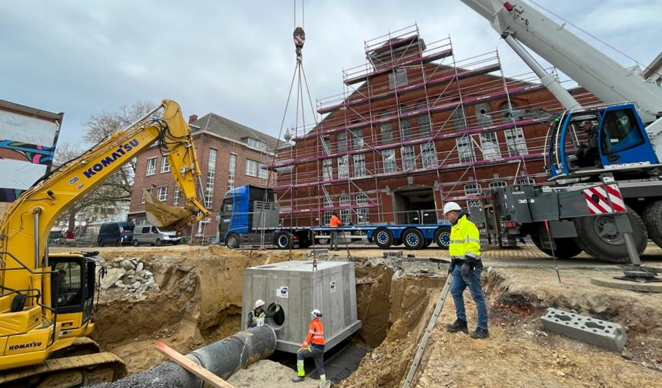 Cet été, les 131 forages géothermiques seront réalisés, notamment dans la cour d’honneur au travers du bassin d’infiltration.