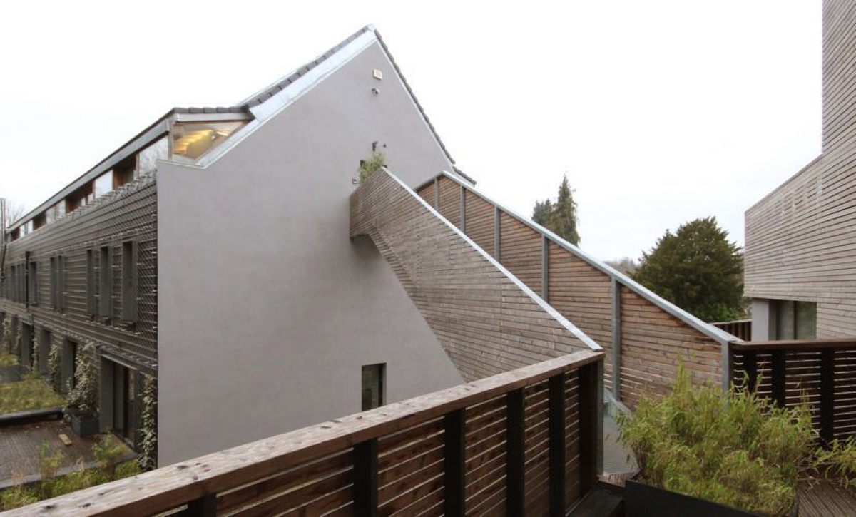 Construction neuve de logements passifs et de commerces basse énergie. Rénovation d’un bâtiment en intérieur d’ilot en loge-ments passifs.
