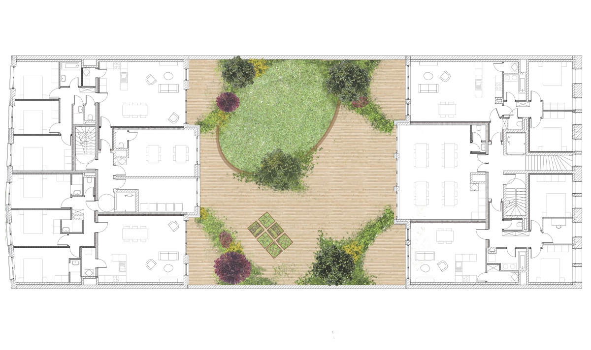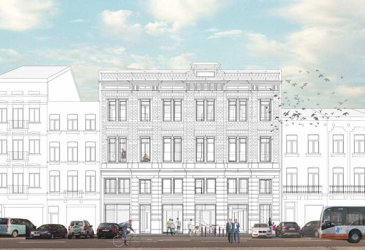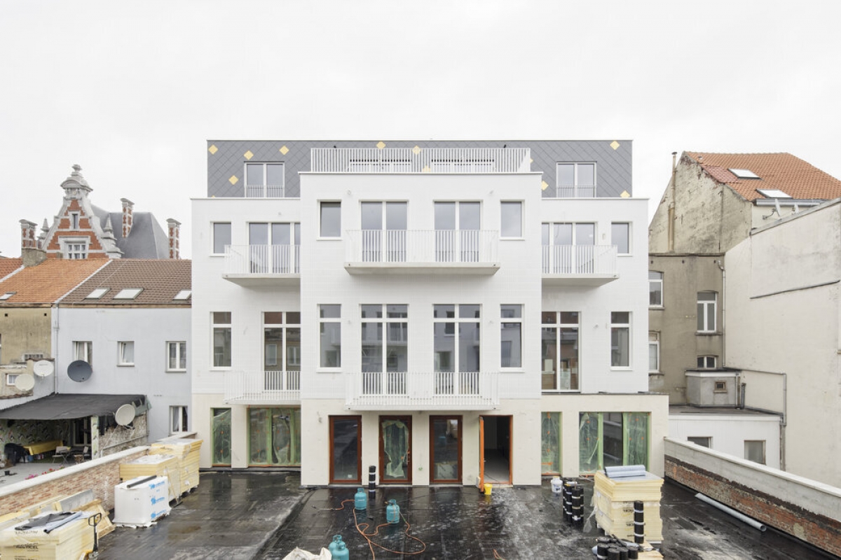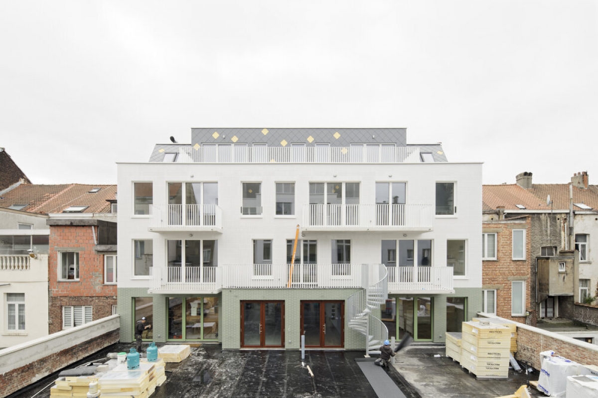 Construction neuve + rénovation de 23 logements + commerce au rez-de-chaussée + parking au sous-sol et d’un espace vert.